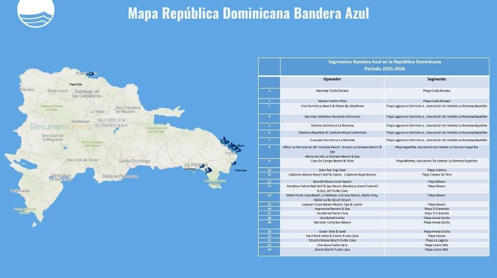 El reconocimiento “Bandera Azul” se otorga a las playas que cumplen exigentes estándares de calidad ambiental es administrado internacionalmente por la Fundación para la Educación Ambiental (FEE) y a nivel nacional por el Instituto de Derecho Ambiental de la República Dominicana (IDARD). Actualmente, existen unos 46 países que implementan el programa, en donde han sido reconocidos 4,671 destinos con el galardón otorgado a Playas, Marinas y Embarcaciones.
