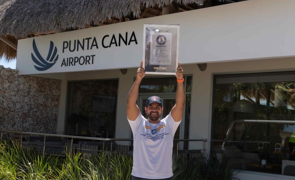 Dominicano impone récords Guinness y visita 30 estadios de MLB llega al país por el Aeropuerto de Punta Cana