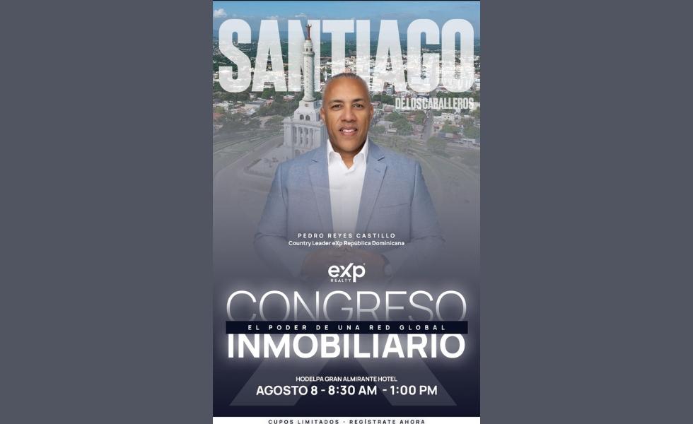 Santiago. – EXp Realty República Dominicana realizará el Congreso Inmobiliario “El Poder de una Red Global”, el próximo 8 de agosto en Santiago en el Hodelpa Gran Almirante . Este evento reunirá a más de 350 agentes inmobiliarios, desarrolladores, inversionistas y