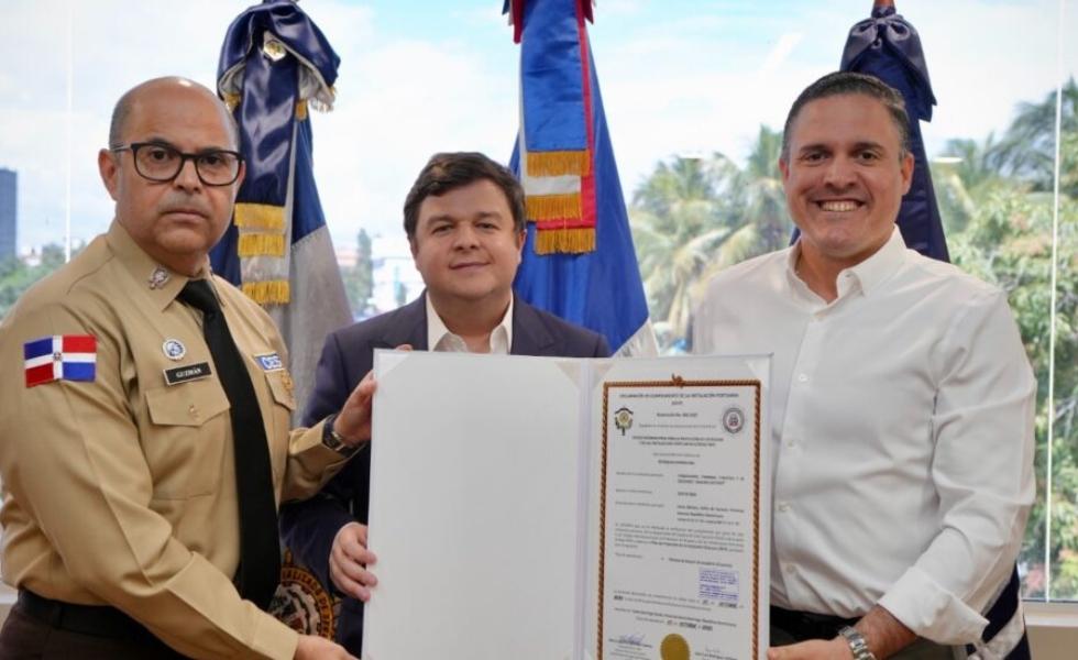 La Autoridad Portuaria Dominicana (APORDOM) y el Cuerpo Especializado de Seguridad Portuaria (CESEP) entregaron a la terminal turística y de cruceros Samaná Bayport la certificación de cumplimiento de las normas de Protección de Buques y las Instalaciones Portuarias en el